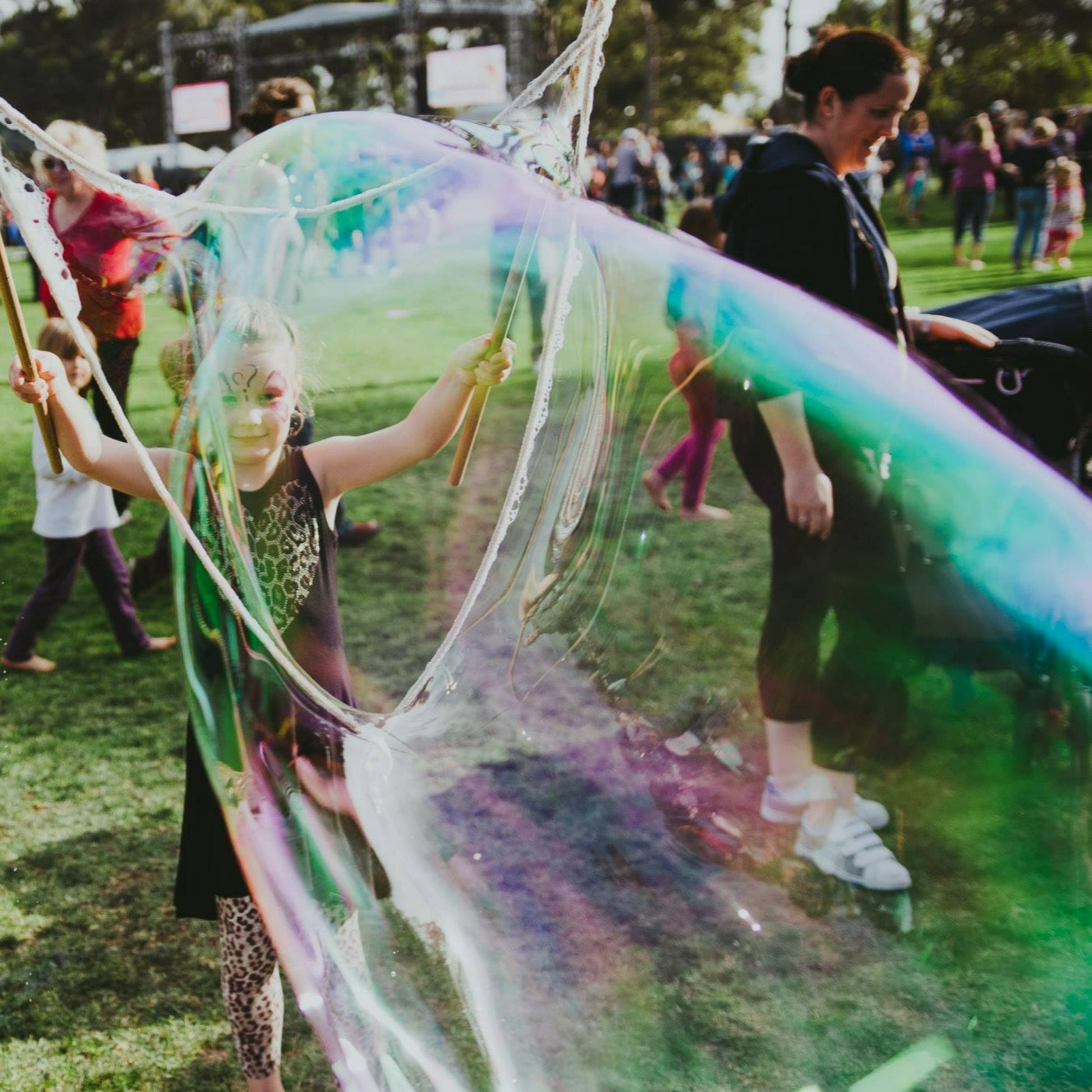 Giant bubbles with giant wands.