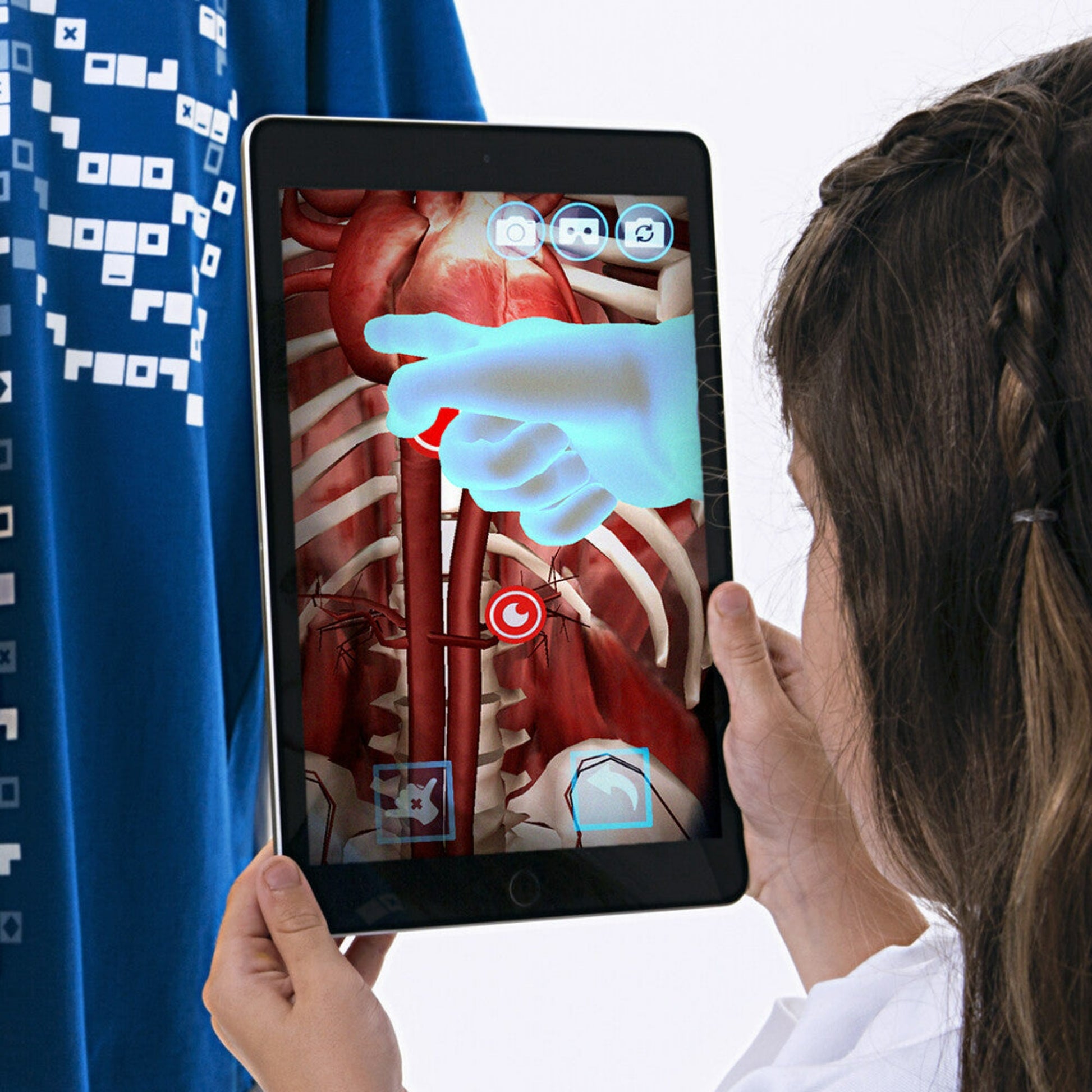 Virtuali-Tee is an Augmented Reality T-Shirt that brings learning to life. Point your phone at the t-shirt and open a portal to another reality – the world under your skin!